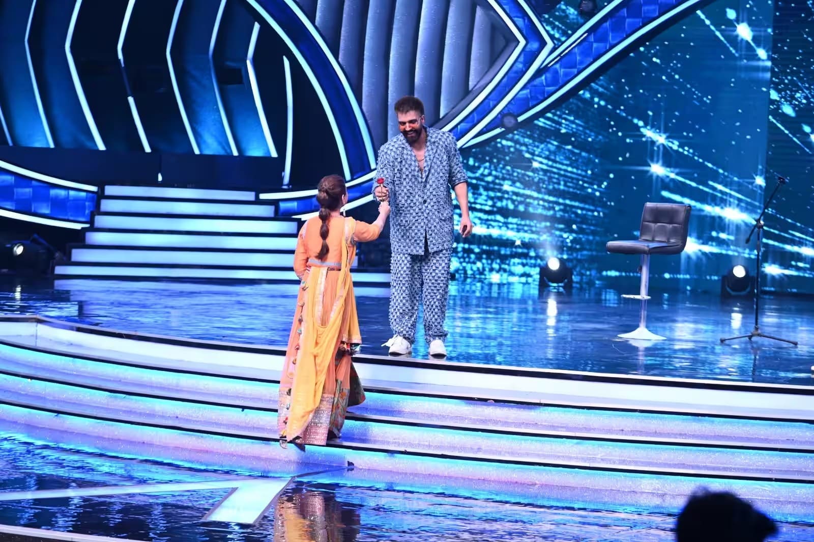 Sonali Bendre couldn’t hide her affection for the brilliant singer, after the performance. She walked on stage with Harrdy and presented him with a lovely rose and did not shy away from confessing that she is a huge fan of his music, She also added “I’m a huge fan of yours,” she exclaimed, ” This song is my absolute favorite; it has a special place in my heart. Your talent to portray emotions through music is simply remarkable.”
