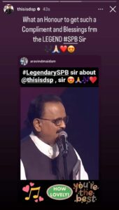 DSP expressed his gratitude for SP Balasubrahmanyam’s kind words, calling it an honour to receive such a compliment and blessing from the legendary musician. The video serves as a heartwarming tribute to DSP’s artistry and character.